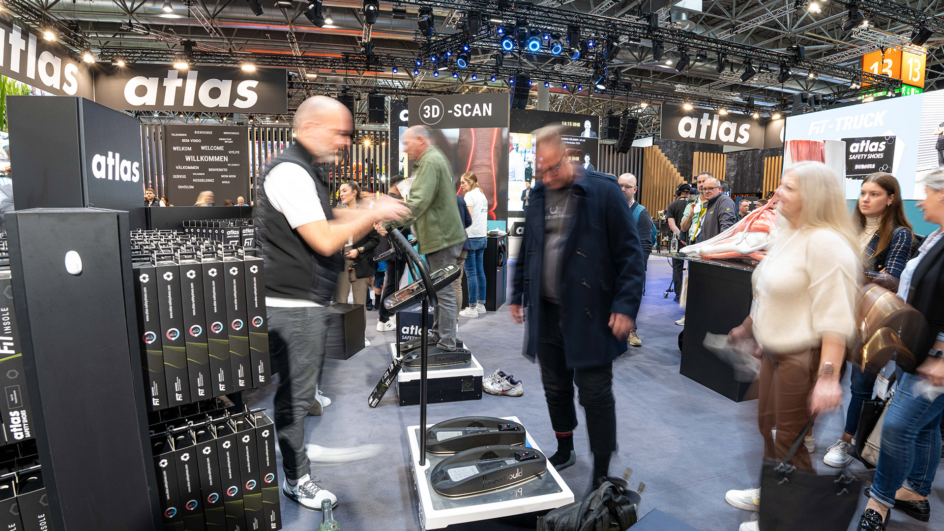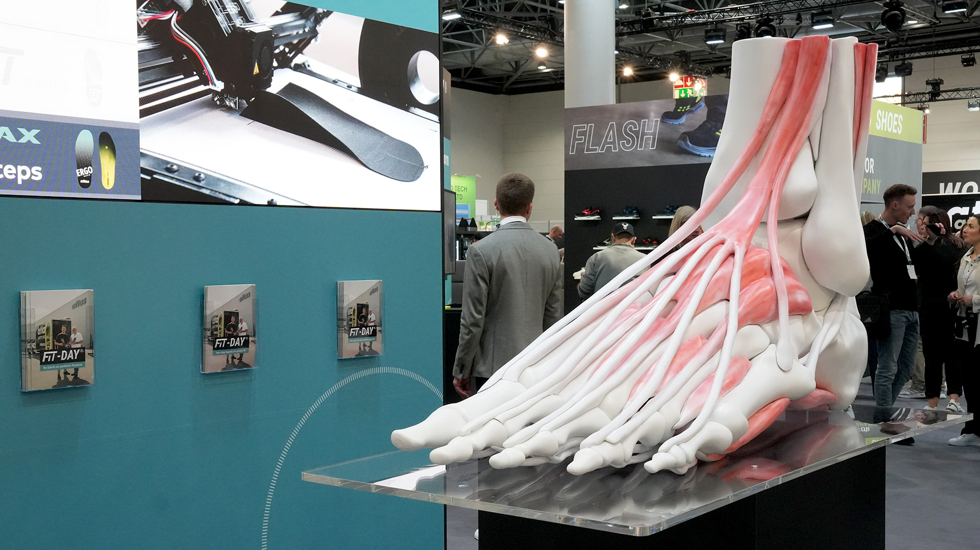 Pierwszy moduł poświęcony jest pomiarowi i analizie stóp przy użyciu najnowszej technologii skanera 3D. Model stopy w rozmiarze XXL zapewnił żywy wgląd, pozwalając odwiedzającym dosłownie "uchwycić" geometrię stopy na stoisku. Drugi moduł, rozwiązanie Comfort, opiera się na wypróbowanych i przetestowanych wkładkach ERGO-MED, które są specjalnie zaprojektowane dla różnych wad stóp. Rozwiązanie Comfort Plus w trzecim module sprawia, że personalizacja jest jeszcze łatwiejsza: na innowacyjnej stacji flowmould, wkładka FIT INSOLE może być półortopedycznie dostosowana do najbardziej osobistej stopy w zaledwie cztery minuty. W czwartym module, rozwiązanie medyczno-ortopedyczne, ATLAS prezentuje swoją współpracę z firmą partnerską GetSteps. ATLAS posiada udziały w GetSteps od 2024 roku, co znacznie wzmocniło podaż wkładek ortopedycznych do obuwia ochronnego. ATLAS pracuje również nad innymi przyszłościowymi rozwiązaniami: